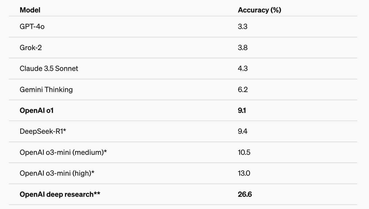 The model outperforms all competitors in the Humanity’s Last Exam benchmark, slightly surpassing the o3 preview with a 25.7 score.